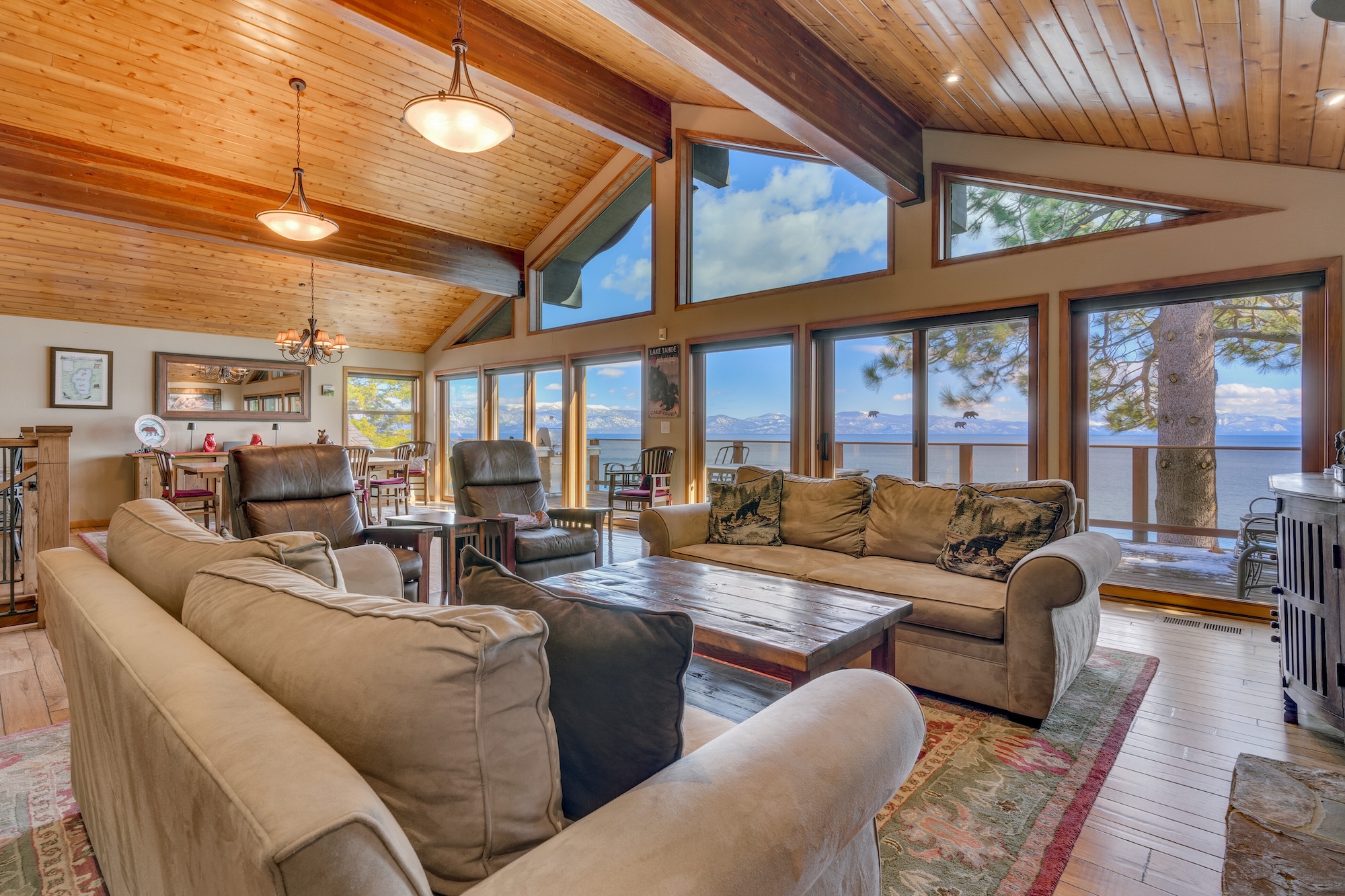 “We’ve made so many fantastic memories here over the years,” says Mike Andersen, former director of career development with the University of California football team. “There’s nothing like getting up in the morning and walking right out the back door and jumping into the Lake. I would often just sit and watch Osprey catch fish and then fly right past our deck on their way back to their nest. It’s such a magical location.”